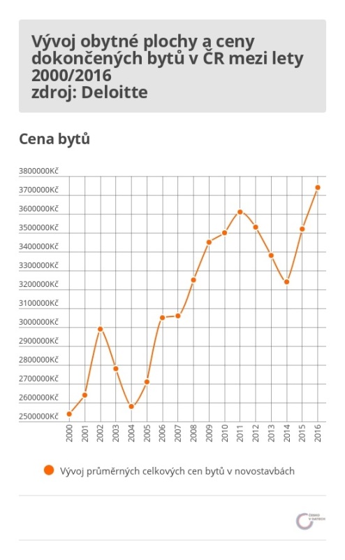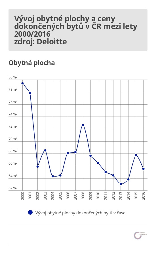 ČR – vývoj cen a obytné plochy bytů v ČR