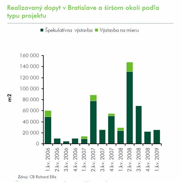Prieskumy poradenských spoločností poukazujú na to, že hoci začiatok roka 2009 vyzeral z pohľadu mnohých makroekonomických či realitných ukazovateľov sľubne, týkalo sa to len štatistiky oproti rovnakému obdobiu rokov 2008 alebo 2007. Moment zotrvačnosti navodený razantnosťou predchádzajúceho hospodárskeho rastu však pomaly, ale isto ochabuje a pri medzimesačnom a medzikvartálnom porovnaní už vystupujú do popredia prvé markantnejšie dôsledky vytrvalého pôsobenia globálnej krízy v lokálnych podmienkach. Spoločnosť CB Richard Ellis to v poslednom vydaní BIG BOX – pravidelného reportu o trhu s priemyselnými, logistickými a skladovými nehnuteľnosťami potvrdzuje. Výsledky za prvý štvrťrok 2009 hovoria: celkový objem prenájmov logistických priestorov dosiahol 25 176 m2, čo znamená medzikvartálny pokles realizovaného dopytu o 19 percent!