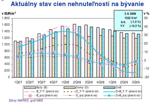 Pokiaľ ide o vývoj poskytnutých nových úverov a úverov na bývanie, ku koncu roka eviduje NBS spomalenie ich objemu v protiklade s nárastom záujmu o ne v 2. kvartáli 2009. „Nad oživovaním sa vznáša plamienok neistoty,“ skonštatoval Cár a v rámci bytovej výstavby upozornil na výrazné zvýšenie počtu rozostavaných bytov. Na druhej strane povzbudzujúcim momentom podľa neho je, že počet odovzdaných bytov konečne prevýšil počet novo načatých. Určujúcim faktorom na trhu je, že ponuka bude ešte dlho prevyšovať dopyt, preto v budúcom roku treba očakávať stagnáciu CNB, ba v prvom kvartáli 2010 ešte s mínusovým znamienkom. „2010 však bude rokom zásadnej kryštalizácie slovenského realitného trhu,“ neskrýval svoje presvedčenie.