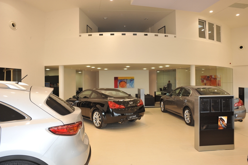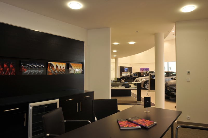 Autosalóny sú síce ako architektonický typ maloobchodnou predajnou jednotkou, ale v ich pomerne širokom spektre sú jednoznačne unikátom. Je to dané výnimočnými rozmermi, ako aj cenou predávaného tovaru, spôsobom predaja a predovšetkým snahou podporiť a prehlbovať povedomie o značke a jej identite. To je – samozrejme, popri funkčnosti – i hlavnou úlohou budov autosalónov a ich architektúry. „Celkový koncept, architektonický štýl i dizajn interiérov vychádzajú z manuálu platného pre všetky krajiny, čo značke Infiniti zabezpečuje jednotnú prezentáciu na celom svete,“ vysvetľuje Ivana Zimová, manažérka marketingu skupiny Auto Palace Group, ktorá Infiniti Centrum Praha prevádzkuje. Záväznosť univerzálneho konceptu však neznamená, že značky autosalónov sú všade na svete absolútne identické. Pri ich navrhovaní musí architekt okrem už daných pravidiel brať do úvahy aj zámer predajcu, veľkosť a typ trhu a v neposlednom rade i kvalitu a charakter pozemku a lokality vôbec. Univerzálne štandardy však viac-menej zaručujú, že výsledok vždy zodpovedá koncepcii a charakteru značky a jej produktom. A hoci to na prvý pohľad nemusí byť zrejmé, autosalóny a samotné vozidlá značky Infiniti majú spoločného viac, ako by sa mohlo na prvý pohľad zdať.