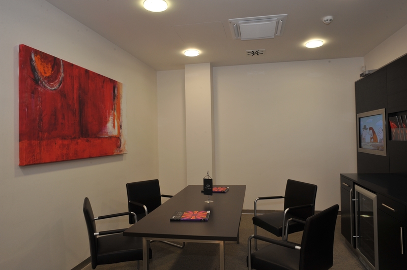 Opticky je show-room rozdelený galériou vo výške prvého poschodia, kde sa nachádza tiež konferenčná miestnosť, ktorú môžu zákazníci Infiniti Centrum Praha využívať na svoje rokovania úplne zadarmo. Ďalšie rokovacie priestory, vrátane biznis lounge a kancelárií personálu sú umiestnené na prízemí pod galériou. Ústretovosť a priateľské poňatie všetkých priestorov pritom podčiarkuje skutočnosť, že väčšina stien je presklená. „Chceme navodiť atmosféru ako v malých luxusných boutique hoteloch,“ konštatuje Ivana Zimová. Prírodný leštený kameň, keramika v pastelových farbách a teakové drevo na jednej strane pomáhajú vytvoriť takpovediac domácku atmosféru, sklo a kov na strane druhej deklarujú predsa len technicistný a praktický charakter stavby. Zámer je zrejmý: architektúra autosalónu má za úlohu evokovať podobnú náladu a emócie, ktoré vyvolávajú samotné autá Infiniti.