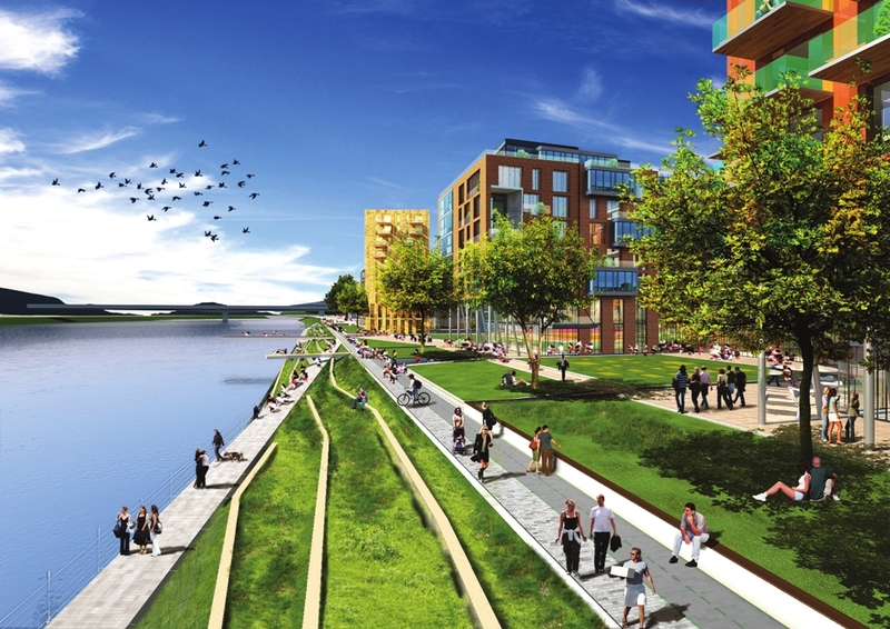 verejné priestory medzi jednotlivými blokmi, moderná nábrežná promenáda