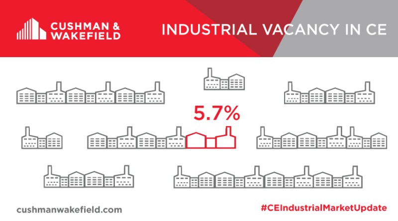 V strednej Európe dnes existuje takmer dvadsať miliónov metrov štvorcových moderných priemyselných plôch k prenájmu. Záujem zo strany nájomcov je tak silný, že podiel voľných plôch klesol na historické minimum 5,7 percenta. Pre porovnanie – podiel voľných kancelárií je dvojnásobný (12 percent). Vyplýva to zo zistenia spoločnosti Cushman & Wakefield, ktorá trh priemyselných nehnuteľností na Slovensku, v Českej republike, Poľsku, Maďarsku a Rumunsku dlhodobo sleduje.