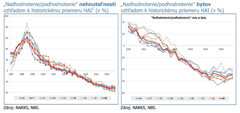 Výraznejší rast príjmov ako rast cien bývania ako celku sa prejavil v miernom zlepšení dostupnosti bývania z dlhodobého hľadiska. V prípade bytov pokračovalo na konci roku 2016 zhoršovanie ich dostupnosti z dlhodobého hľadiska vo väčšine slovenských regiónov (okrem Bratislavského kraja a Žilinského kraja). Rast cien bytov bol vo 4. štvrťroku 2016 vo viacerých regiónoch výraznejší ako rast príjmov domácností.