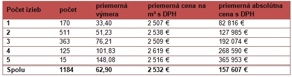 Špecifiká predaných novostavieb v Bratislave rozdelené podľa izbovosti